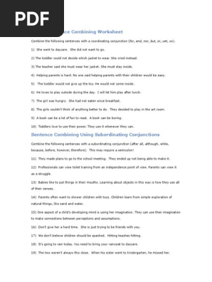 Can your child help sarah make her writing less repetitive? This worksheet helps with some examples of sentences to combine so you can get lots of practice. Combining sentences, identifying subjects and predicates worksheets. Combining short choppy sentences worksheet combining sentences worksheets with pecs combining compound sentences worksheet combining simple sentences worksheet free. Worksheets are complex sentences sentence combining four types of, sentence combining.